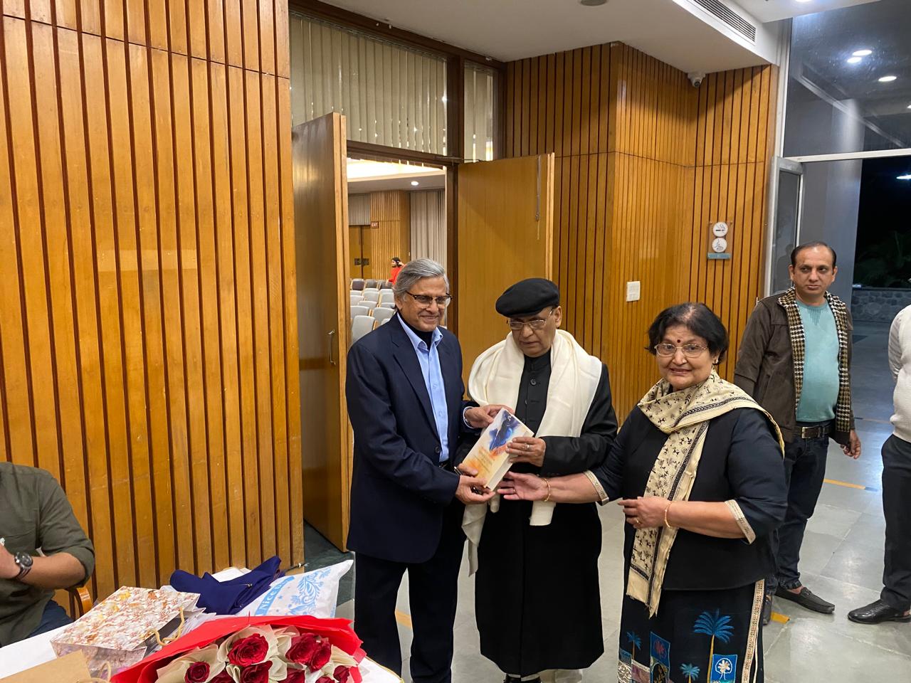 Hon’ble President of India Pranab Mukherjee accepting the French translations of author Mahesh Manzar’s poetry A La Recherche De Moi-Même; In Search of The Self (English) at the Rashtrapati Bhavan in the presence of his mentor Mani Shankar Aiyar & his wife, on 29 March 2017.